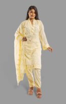 The Pure Georgette V-Neck Designer 3-Piece Set with All-Over Moti Work, Pearl Work, Designer Pants, and Embroidered Dupatta is an opulent, stylish, and versatile outfit that combines traditional craftsmanship with modern design.